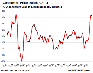 On an annual basis, CPI jumped by 5.4%, matching the June high this year, and both are the highest since July and August 2008 (5.6% and 5.4%), and all four are the highest since early 1991, according to data released by the Bureau of Labor Statistics today.
