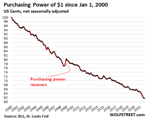 In the end, inflation indexes are political devices, decided by politics, for political purposes – underplaying the actual loss of purchasing power of the dollar and the purchasing power of people’s earnings. Even if the understatements are fairly small each year, they massively compound over the decades. Every government over the past decades adhered to this strategy religiously.